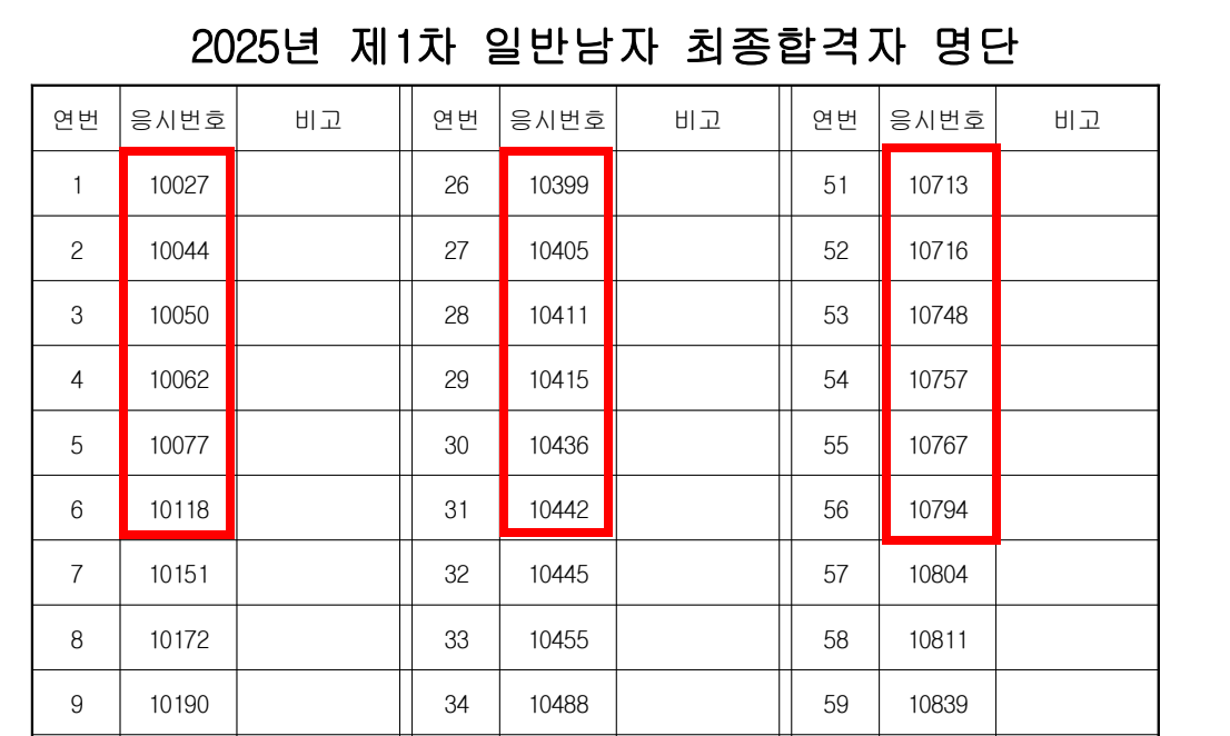 - ✔ 신체검사 일정 및 장소는 별도 공지되며, 보통 발표일로부터 1~2주 내 진행됩니다.