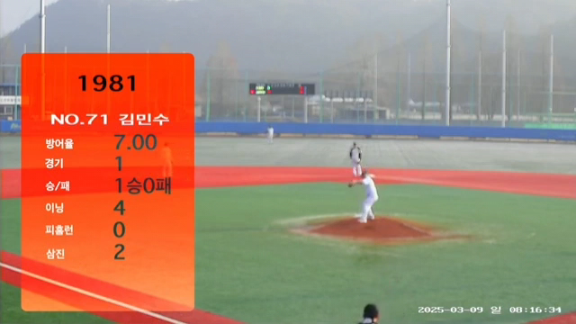 선발 투수로 나선 김민수(4이닝 4실점) 는 총 75구를 던지며 4이닝을 책임졌다. 2피안타, 3볼넷을 내주긴 했지만, 삼진 2개를 곁들이며 비교적 안정적인 피칭을 선보였다. 다소 실점이 있었지만, 타선의 폭발적인 지원을 받으며 승리를 챙겼다.