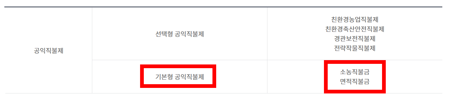 기본형 공익직불금은 아래 두 가지로 나뉩니다.