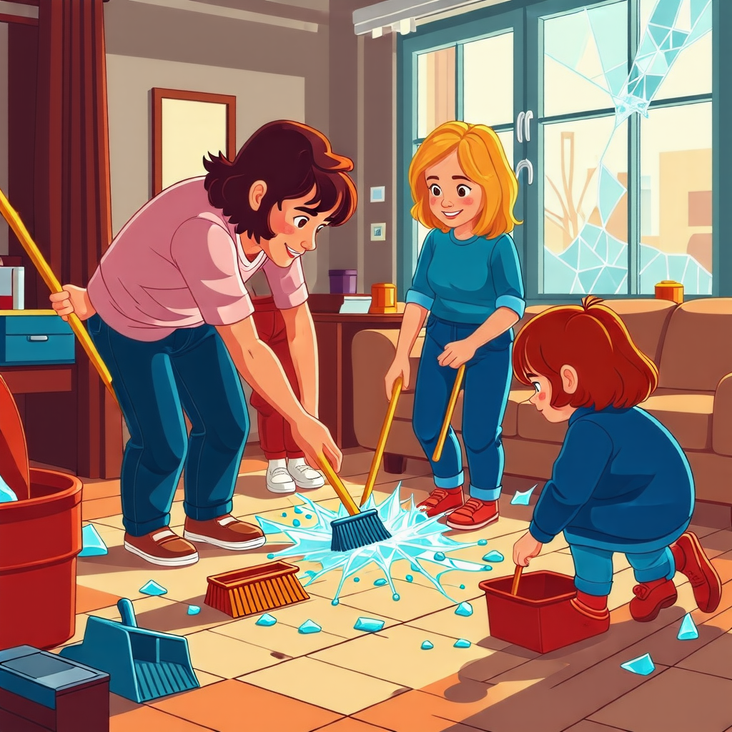 비가 많이 내리고 바람도 거세게 불며, 창문이 깨지고 집 안은 엉망이 되었지만,가족 모두가 함께 나와 이를 정리하고 치우는 모습이 그려졌다고 하네요.