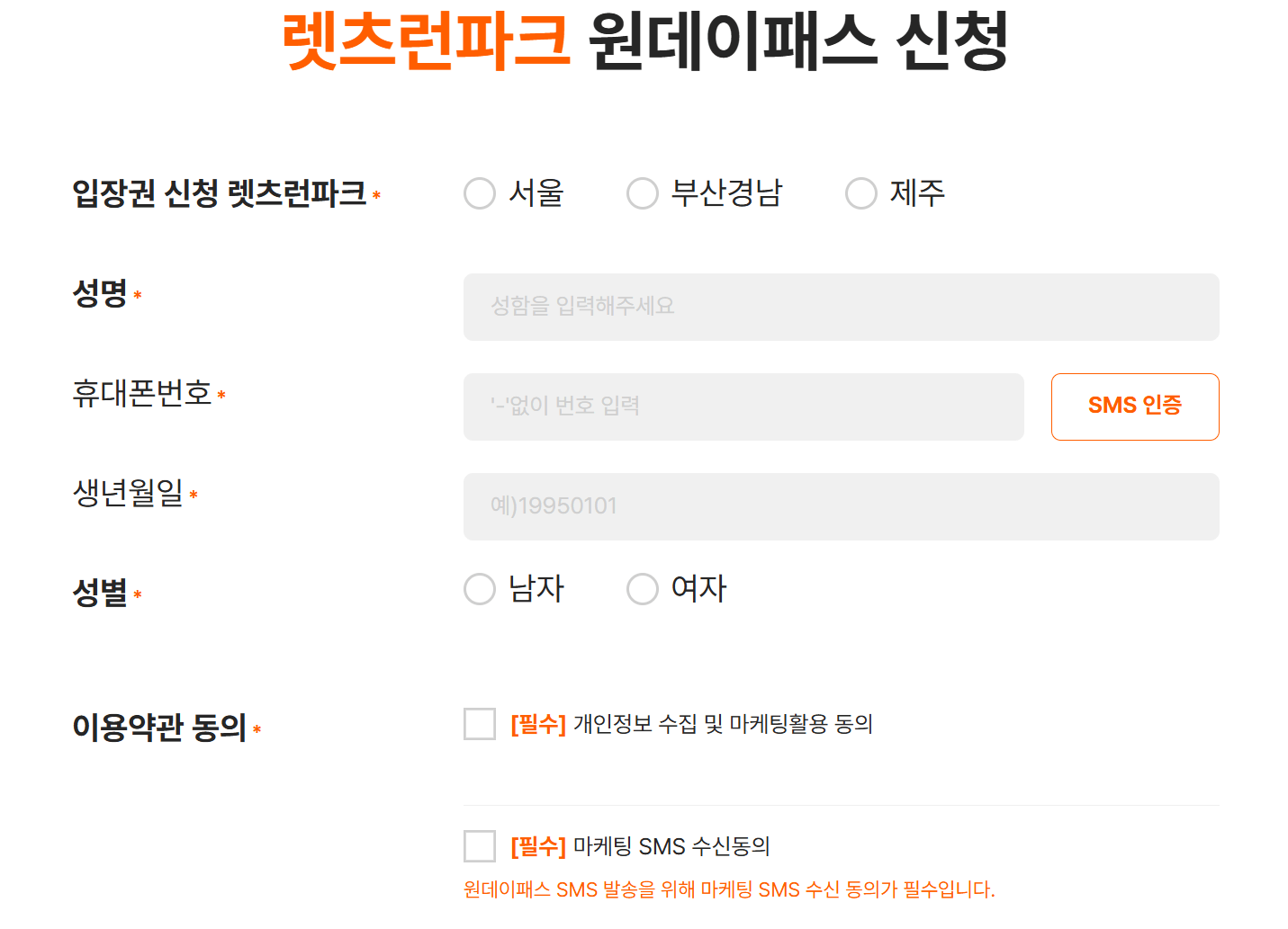 - 각 렛츠런파크 당 1년에 1회 신청 가능