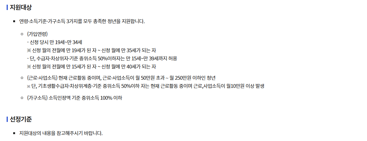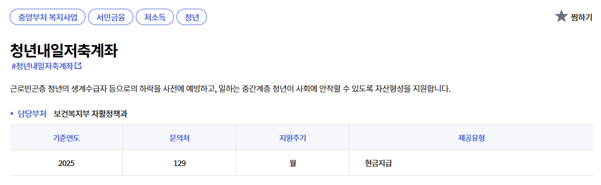 - 접수처: 복지로 청년내일저축계좌 바로가기