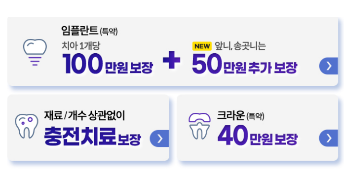 - 임플란트 특약 선택 시 보장범위 확대