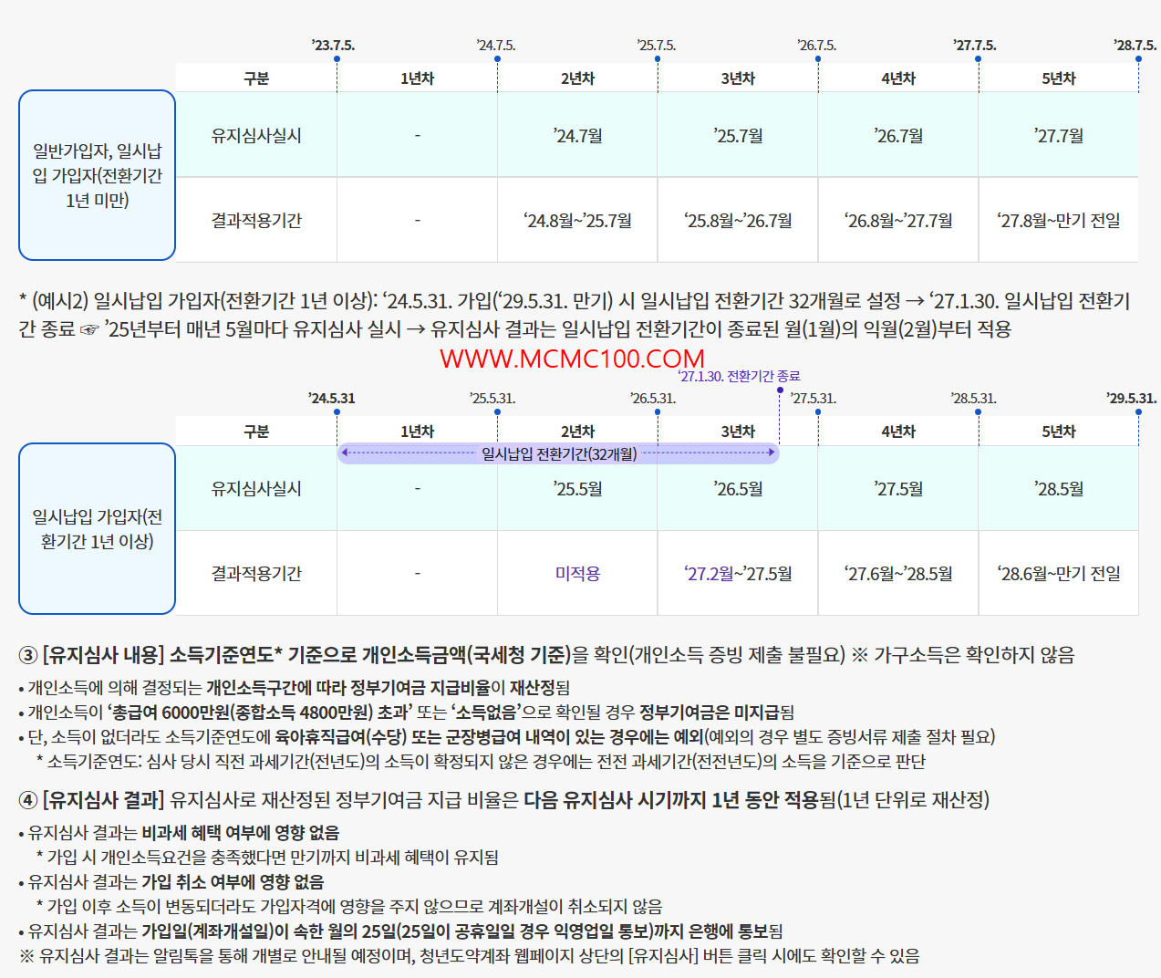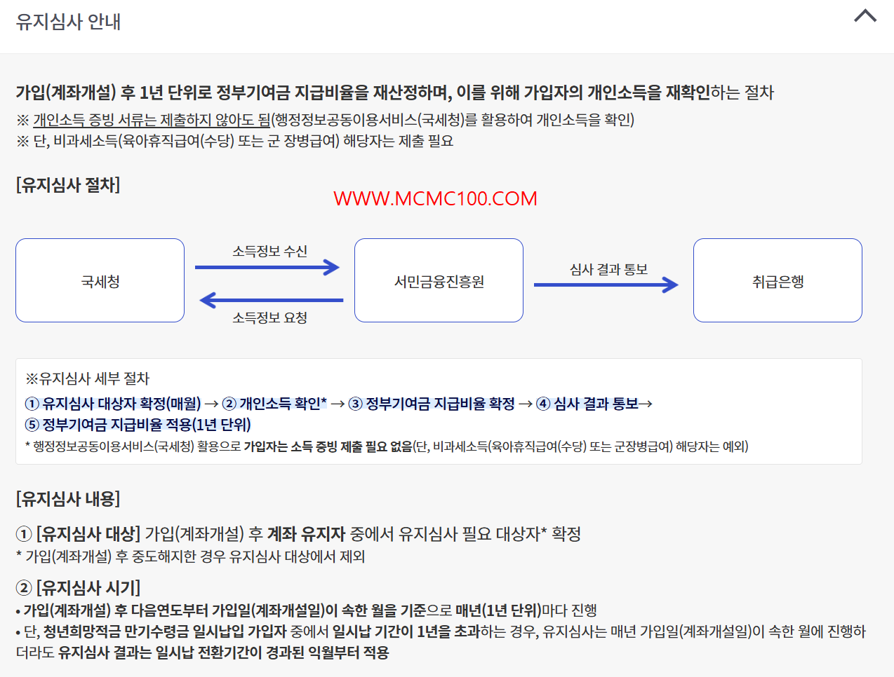 * 본인 소득 기준 재산정: 매년 소득 기준을 재산정하여 정부기여금 적용 비율을 결정합니다.