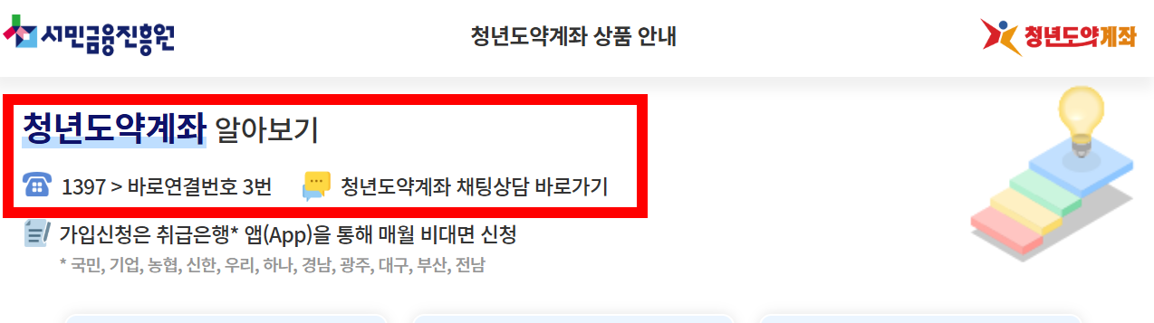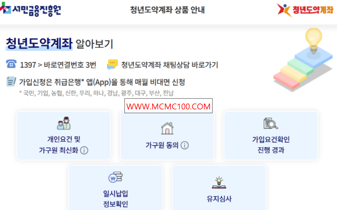 * 각 은행의 홈페이지 또는 앱에서 청년도약계좌 상품 정보를 확인합니다.