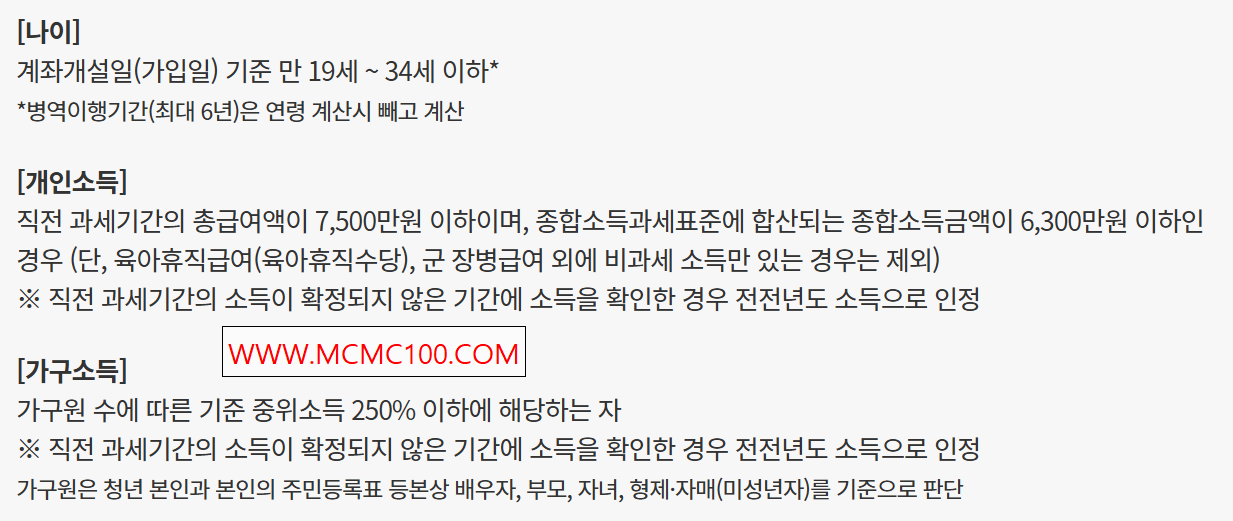 * 가입 조건 제한: 나이, 소득 등 가입 조건이 제한되어 있어 모든 청년이 가입할 수 있는 것은 아닙니다.