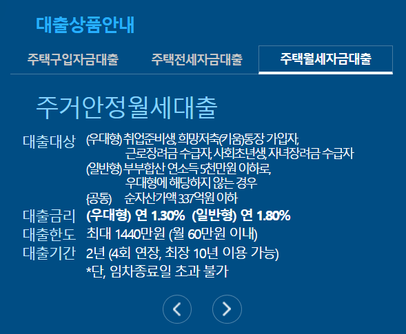 | 대출 금리 | 연 1.1% ~ 4.1% (소득 및 임차보증금에 따라 차등 적용) |