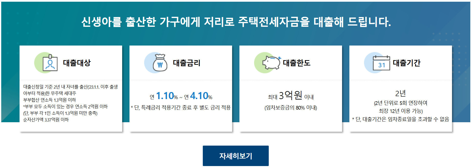 | 대출 목적 | 신생아 출산 가구의 주거 안정 지원 |