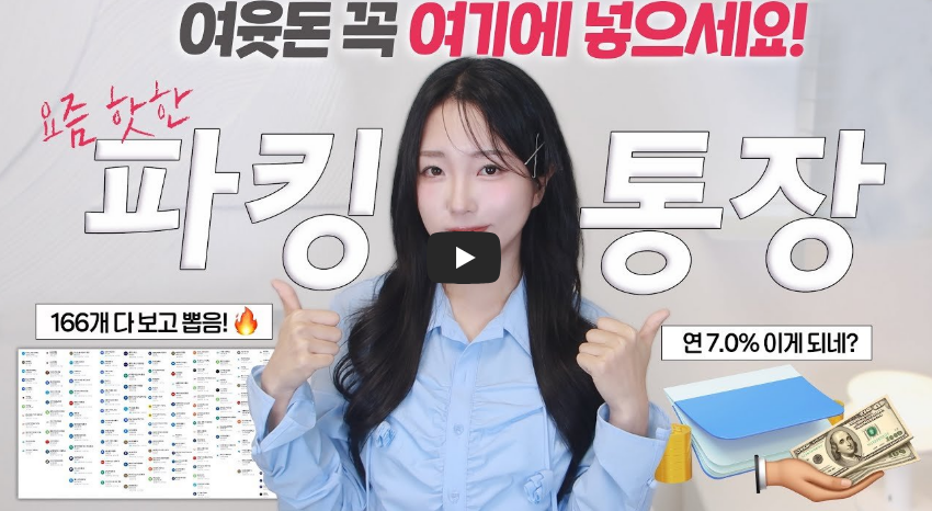 2025년 기준으로 가장 인기 있는 파킹통장을 영상으로 먼저 확인해보세요. 고금리 상품은 조기 마감될 수 있으니 참고하시면 좋습니다. 유명하신 유투버 같으신데 참 정리도 깔끔하고 영상도 재미있네요. 한번씩 보세요. 무엇보다 유투버님이 이쁘시네요